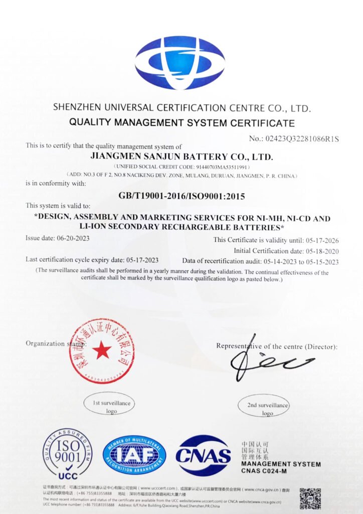 • CCC Certification (China Compulsory Certification): Some battery products require mandatory certification.